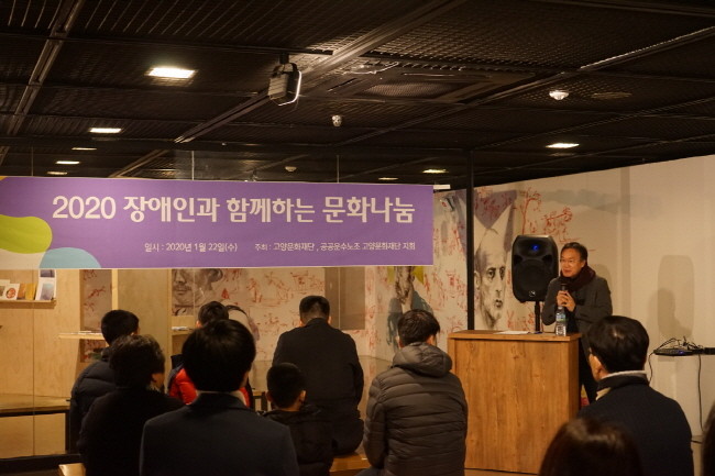 [로컬세계 최아침 기자]경기 고양시 (재)고양문화재단(대표이사 정재왈, 이하 재단)은 지난 22일 고양아람누리에서 노사가 뜻을 모아 훈훈한 이웃 사랑을 실천하는 '2020 장애인과 함께하는 문화나눔' 행사를 개최했다고 밝혔다.